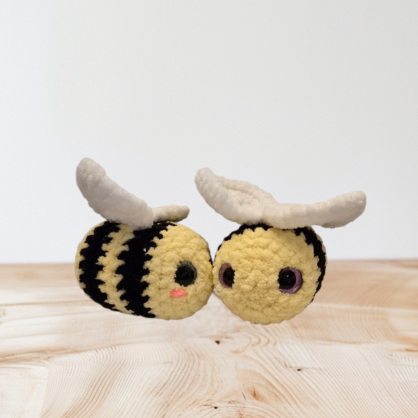Handmade, soft with safety eyes! These Bee's range from approximately 2" - 6" long. Please allow 7-10 business days for your item to be made before it's ready for pickup or shipment.
