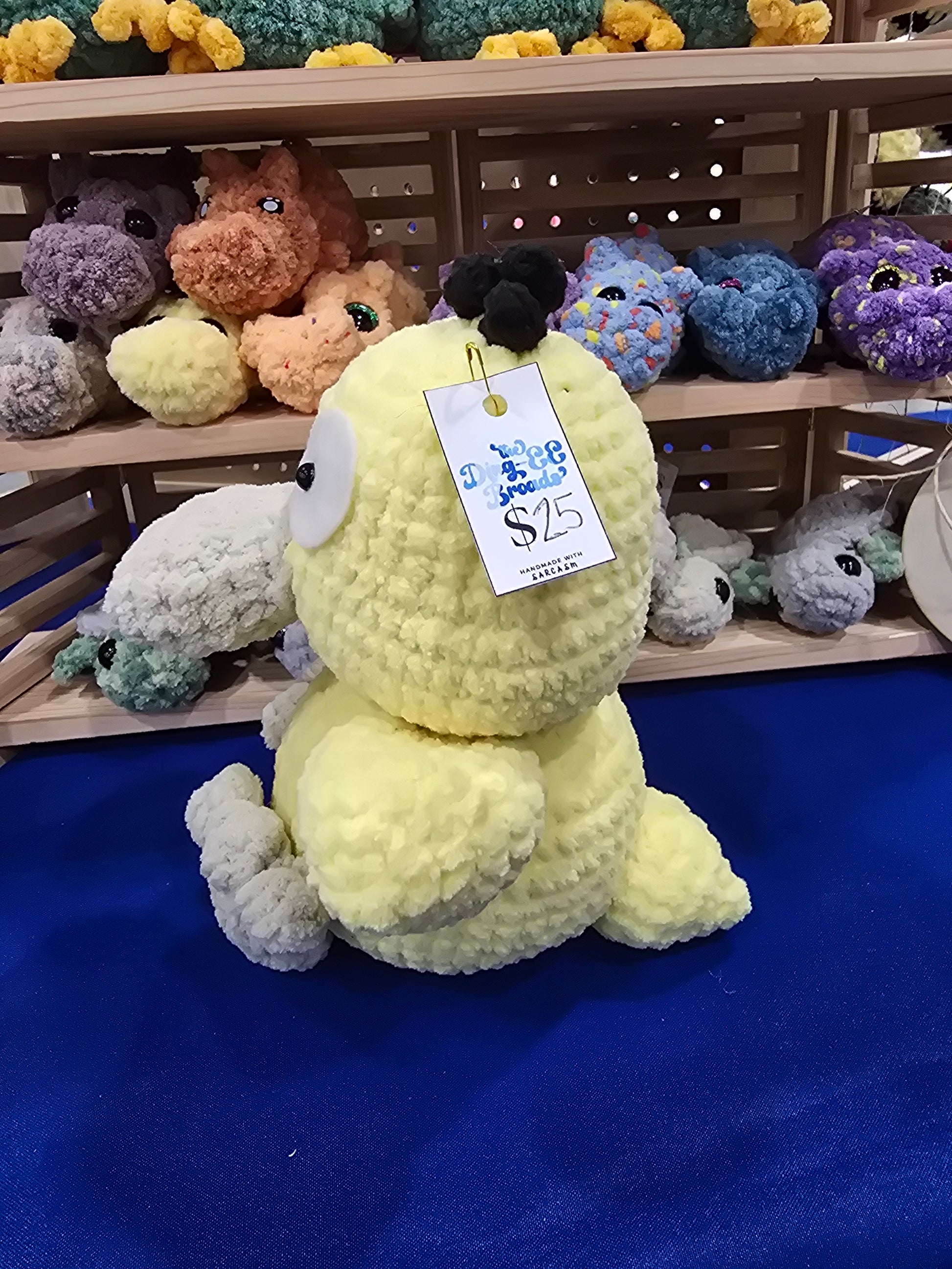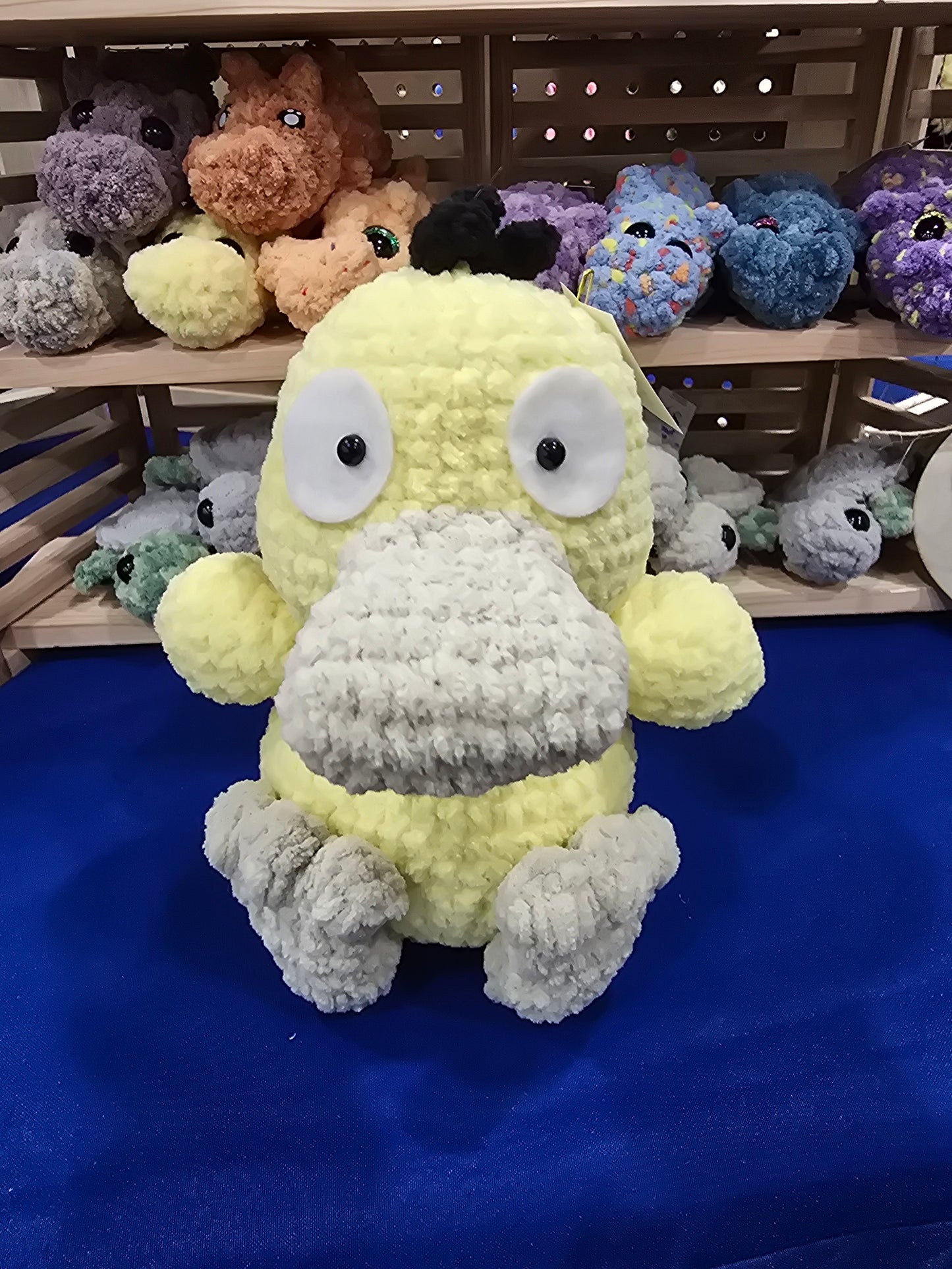 Handmade, soft with felt eyes! This large Psyduck is approximately 12" tall. Please allow 7-10 business days for your item to be made before it's ready for pickup or shipment.