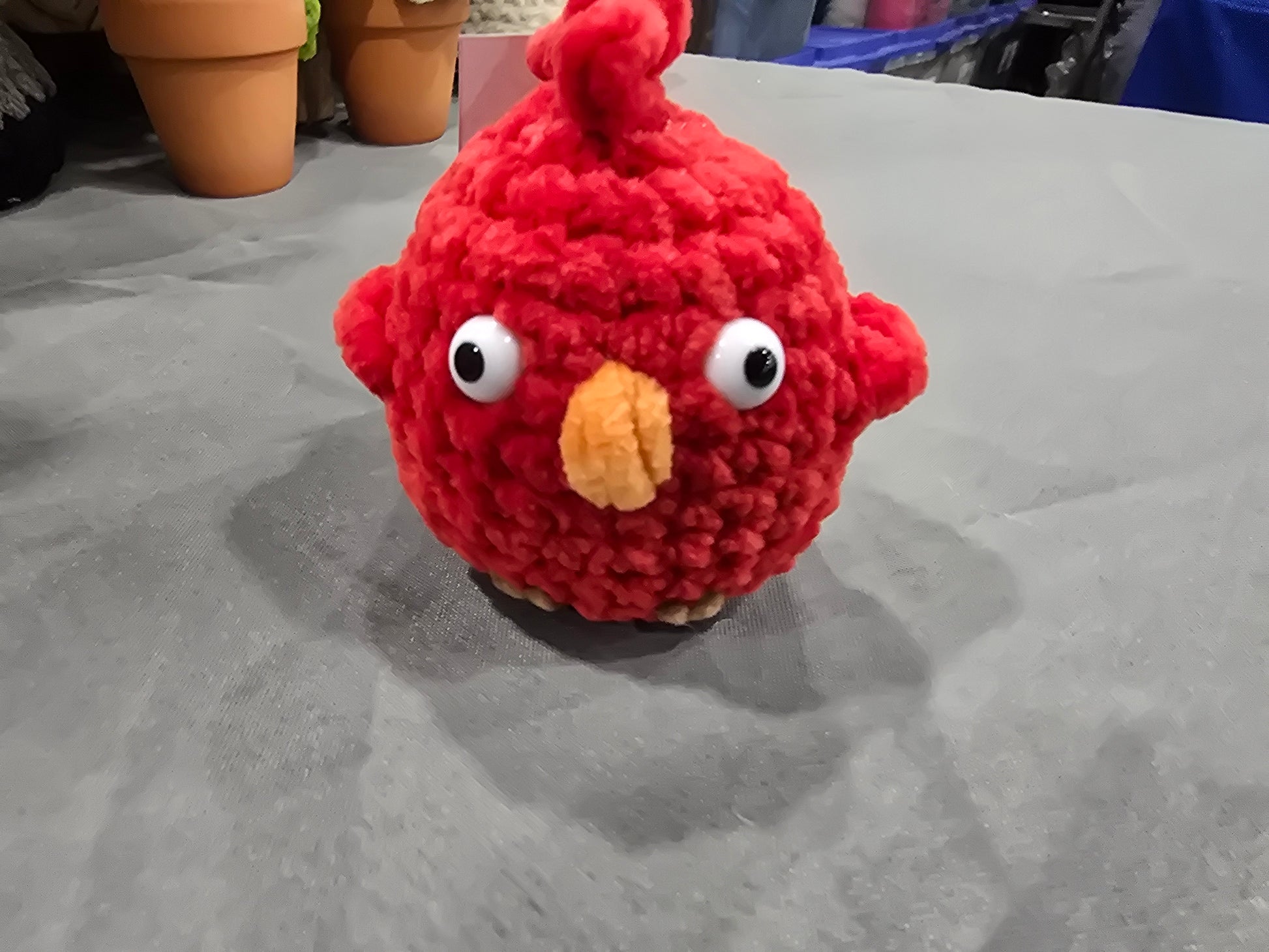 Handmade, soft with safety eyes! This small bird is approximately 3" tall. Please allow 7-10 business days for your item to be made before it's ready for pickup or shipment.